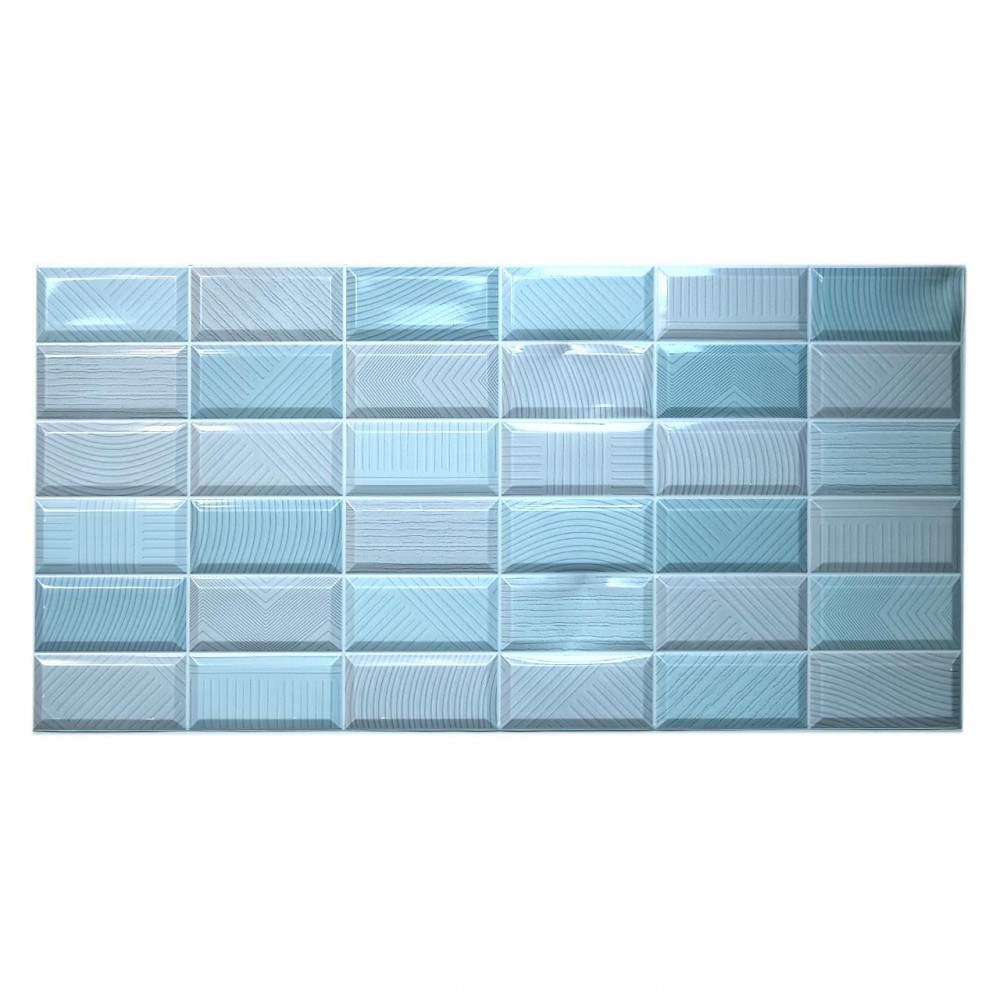 Panou decorativ, PVC, model caramida 3D, albastru, 96x48.5 cm