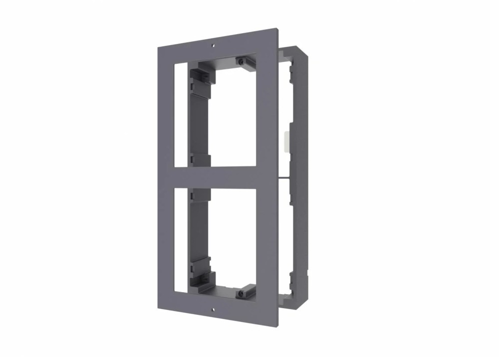 Panou frontal pentru 2 module de videointerfon modular Hikvision DS-KD-ACW2; permite conectarea a 2 module de interfon modular; mont areaplicata; material aluminiu; dimensiuni: 219mm x 107mm × 4mm;