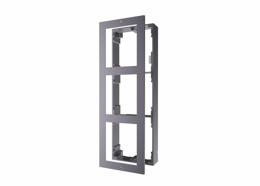 Panou frontal pentru 3 module videointerfon modular Hikvision DS-KD-ACW3; permite conectarea a 3 module de videointerfon modular; mo ntareaplicata; material aluminiu; dimensiuni: 320.8mm x 107mm × 4mm;
