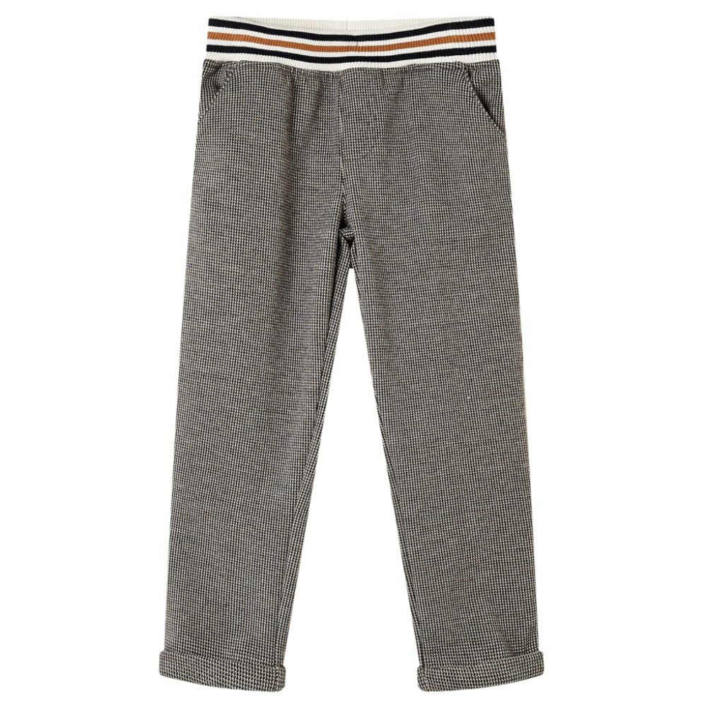 Această pereche de pantaloni pentru copii are o talie elastică, manșete la picioare și două buzunare frontale. Pantalonii pentru copii sunt confecționați din material moale, inclusiv 70% bumbac, 25% viscoză și 5% elastan, pentru confort și durabilitate.