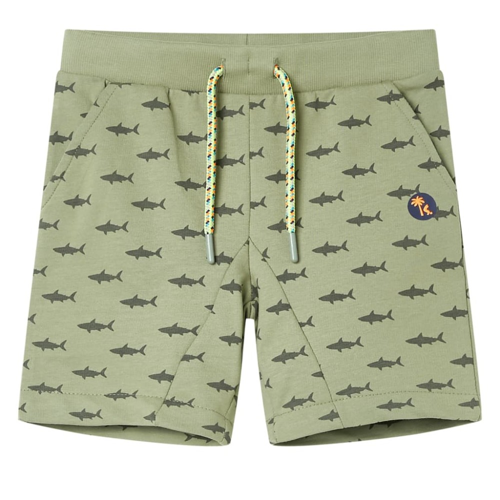 Pantalonii scurti pentru copii prezinta rechini peste tot. Aceasta pereche de pantaloni scurti pentru copii are o betelie elastica in talie, un buzunar fals la spate, doua buzunare laterale si tiv cusut rasucit. Pantalonii scurti pentru copii sunt confectionati din material moale care include 100% bumbac, pentru confort si respirabilitate.