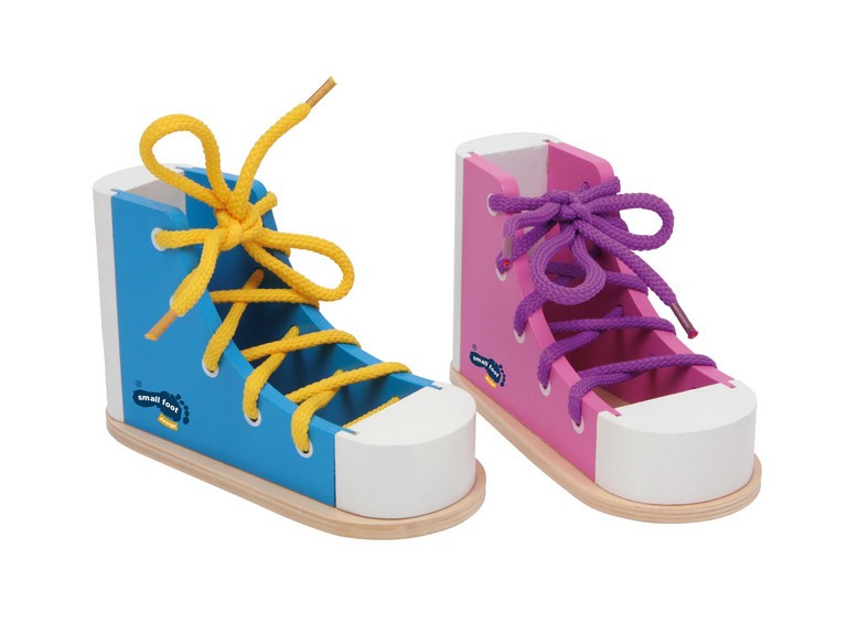 Primul pas al copiilor în a învăța să-și lege pantofii.