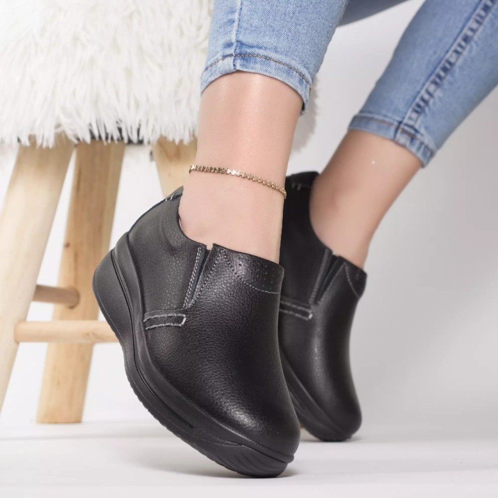 Pantofi cu platforma cordie negru piele naturala, 36