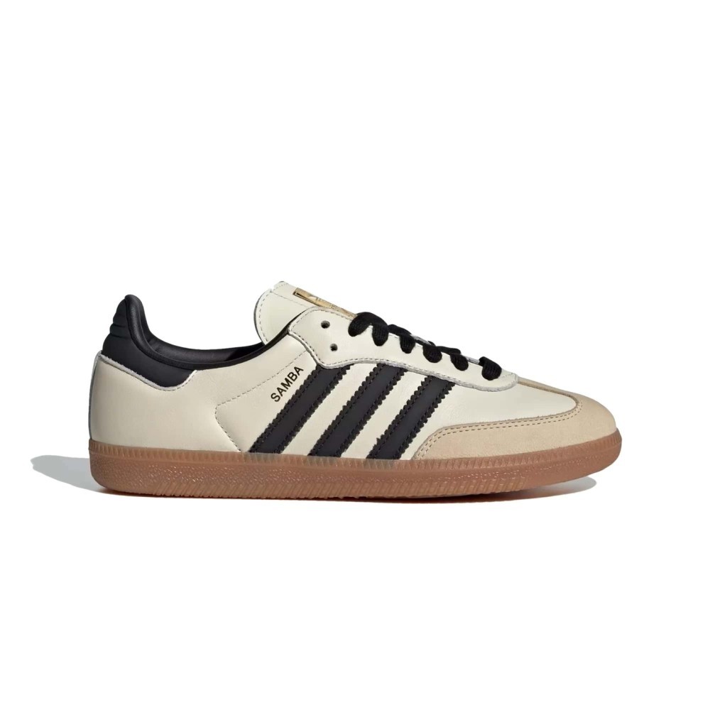 adidas Samba OG W ID0478 ASPECTUL ȘI SENZAȚIA CLASICĂ ALE SAMBA AUTENTIC. Născut pe teren, modelul Samba este o icoană atemporală a stilului urban. Acești pantofi rămân fideli moștenirii lor prin partea superioară din piele moale și suprapunerile din piele întoarsă. Croială standard Închidere cu șireturi Partea superioară din piele full-grain, cu piele întoarsă cu textură și detalii din folie aurie Căptușeală din piele sintetică; talpă cupsole din cauciuc gumă Talpă intermediară din cauciuc gumă Culoarea produsului: Cream White / Core Black / Sand Strata