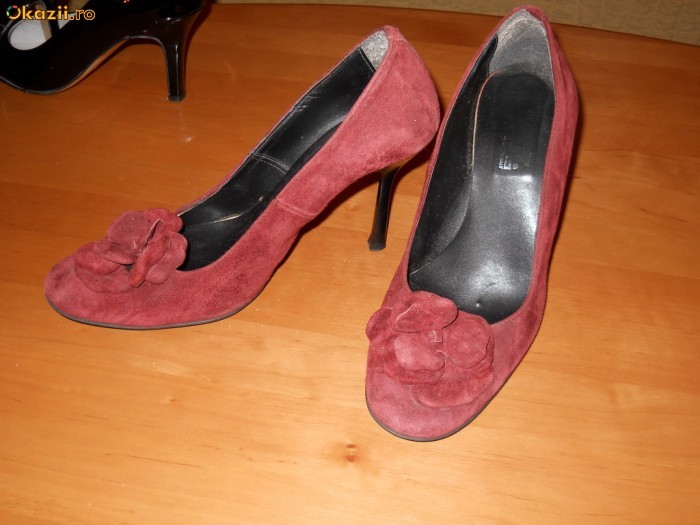 Pantofi VERA GOMMA piele intoarsa , visinii, supercomozi, mar 38,stare f. buna.
