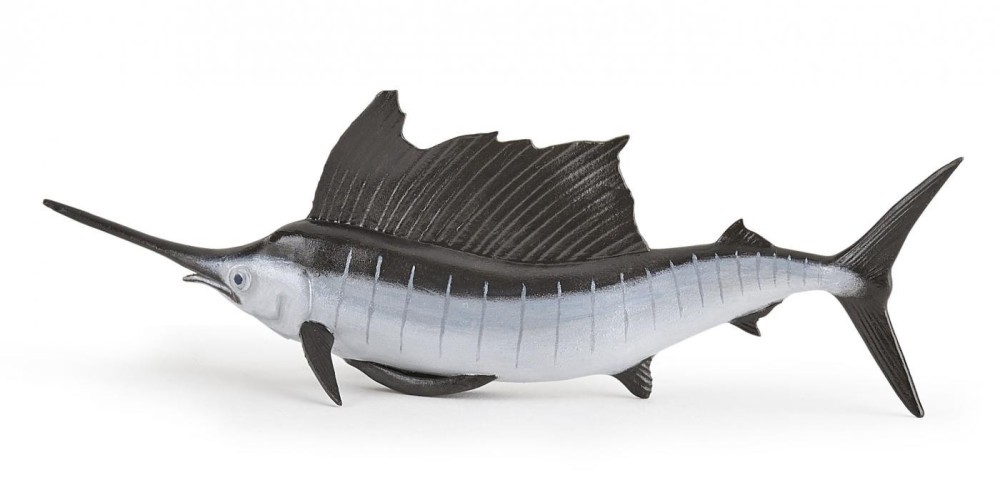 Scufundati-va cu balenele cu cocoasa, sariti in valuri alaturi de delfini sau deveniti un om-broasca capabil sa exploreze adancurile oceanului in cautarea unor exemplare magnifice precum pestele clovn. Pestele-spada este un peste mare, de culoare albastru, gri sau alb, care isi datoreaza numele inotatoarei in forma de val care ii impodobeste spatele. Datorita acestuia din urma poate imparti valurile cu aproape 110 km/h, facandu-l cel mai rapid peste din lume. Se gaseste in apele tropicale si temperate ale Oceanului Indian si Oceanului Pacific. Produsul are urmatoarele dimensiuni 13 x 2.5 x 4.7cm si este recomandat copiilor cu varsta peste 3 ani. De mai bine de 20 de ani, Papo inoveaza constant si ii face pe copii din intreaga lume sa viseze cu o gama bogata de peste 600 de produse, reprezentand 12 lumi, animale si personaje. De la modelul original la serie, fiecare dintre figurinele Papo a fost conceputa si creata in Franta pentru a fi fabricata intr-o permanenta preocupare pentru calitate. Pictate manual, atentia la detalii este acum recunoscuta. Figurinele Papo se disting prin acuratete si realism, detaliile sunt de asa natura incat am putea crede ca se vor pune in miscare.