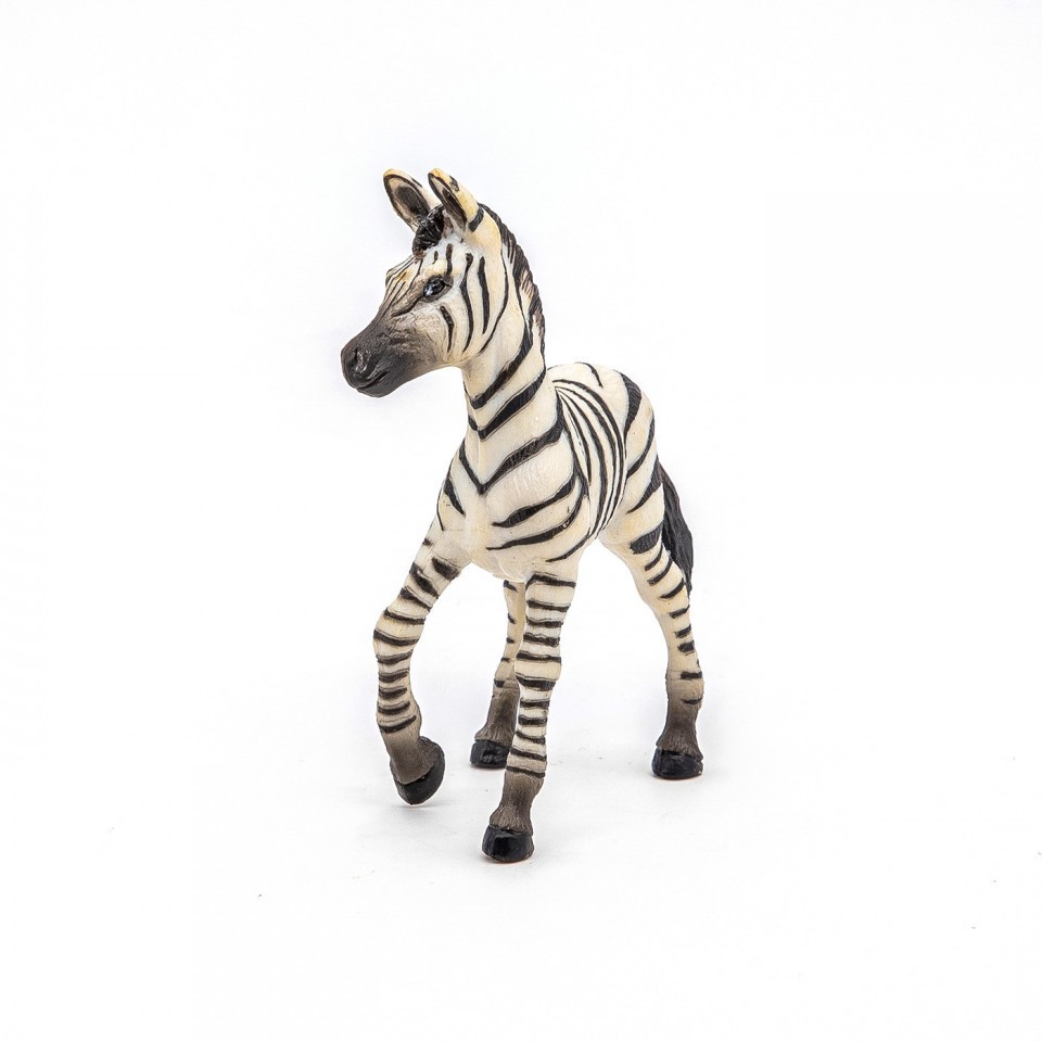 Vizitati cerbul cu coada alba maiestuoasa in inima padurilor, explorati savana alaturi de puternicul tigru de Sumatra sau urcati pe varfuri acoperite de zapada pentru a cauta leopardul de zapada. Puiul de zebra se naste, in general dupa o gestatie de 390 de zile, masoara 50cm si are o greutate de 25kg. Primul lucru pe care il va invata dupa nastere este sa recunoasca zgarieturile de pe posteriorul mamei sale! Fiecare zebra are dungi unice care sunt echivalente cu amprentele umane. Odata ce acest lucru este dobandit, el va putea apoi sa o gaseasca in mijlocul turmei. Pana la varsta de 2-3 ani zebra este inconjurata si protejata de turma, dupa care va trebui sa-si paraseasca familia pentru a se instala intr-un nou grup. Produsul are urmatoarele dimensiuni 8 x 2.8 x 9cm si este recomandat copiilor cu varsta peste 3 ani. De mai bine de 20 de ani, Papo inoveaza constant si ii face pe copii din intreaga lume sa viseze cu o gama bogata de peste 600 de produse, reprezentand 12 lumi, animale si personaje. De la modelul original la serie, fiecare dintre figurinele Papo a fost conceputa si creata in Franta pentru a fi fabricata intr-o permanenta preocupare pentru calitate. Pictate manual, atentia la detalii este acum recunoscuta. Figurinele Papo se disting prin acuratete si realism, detaliile sunt de asa natura incat am putea crede ca se vor pune in miscare.