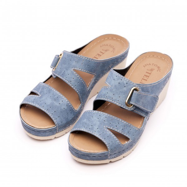 Model 25 - sabotii si sandalele cu brant anatomic "Tellus" sunt confectionate din nubuc artificial si natural. Cu un design discret și elegant, se potrivesc cu orice garderobă de vară și arată grațios pe picior. Pantofii sunt ideali pentru purtarea de zi cu zi și pot fi folosiți și ca schimb de pantofi. Branțul moale vă permite să uitați de senzația de disconfort și oboseală, deoarece are efect de memorare anatomice ale piciorului, distribuie uniform sarcina pe acesta și oferă, de asemenea, masaj în timpul mersului. Forma deschisă nu împiedică mișcările degetelor, iar talpa durabilă din poliuretan absoarbe bine și protejează împotriva vibrațiilor dăunătoare.Lungime branț: 36-23 cm, 37-23.5 cm, 38-24 cm, 39-25 cm, 40-25.5 cm, 41-26 cm.Înălțime toc : 5 cm