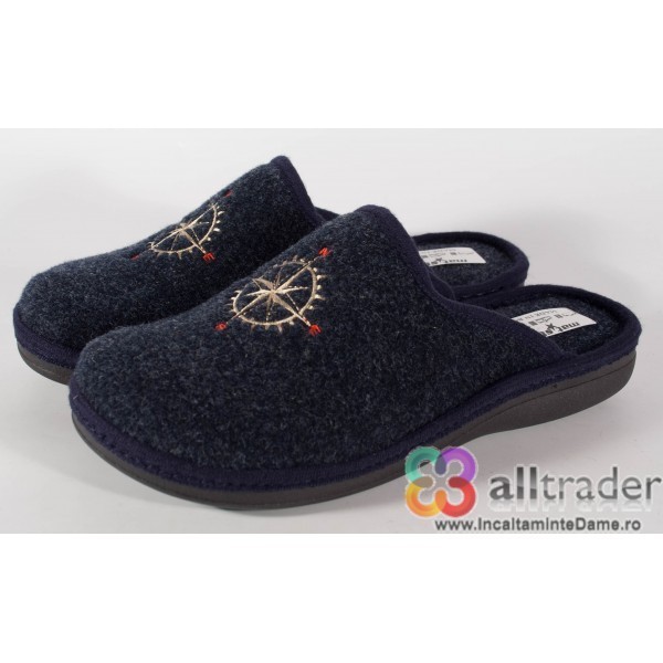 Papuci de casa bleumarini din lana, talpa cu gel si memorie - 191047