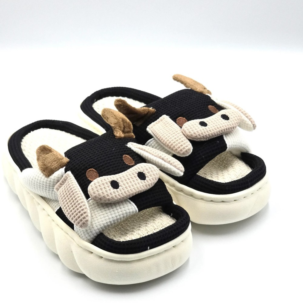 Papuci de casa, confortabili si usori, model vacuta, Negru - 38-39