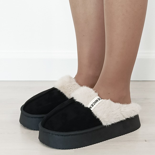Papuci de casa dama imblaniti Negru 9719 112
