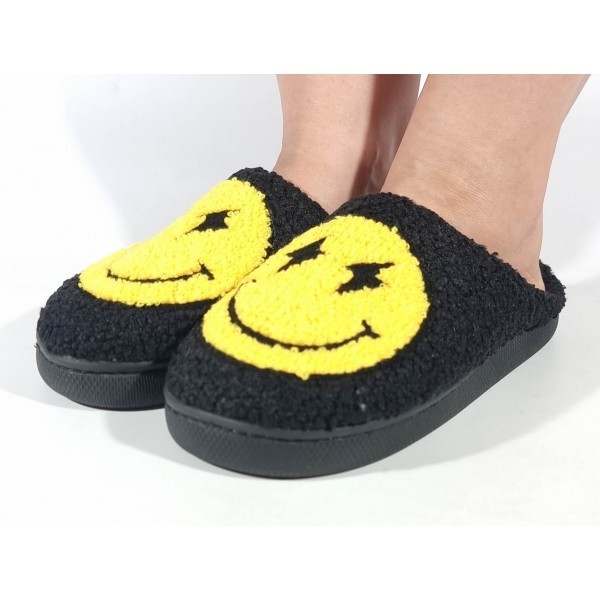Papuci de casa veseli, usori, caldurosi, negru cu galben - model 106352