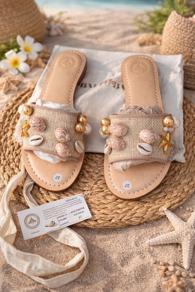Papuci de dama Balibali, cu scoici si perle,Still Boho.pentru