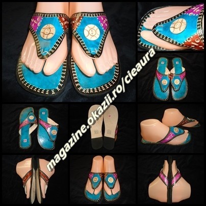 PAPUCI SLAPI FLIP FLOPS DAMA PIELE HAND MADE INDIA TURCOAZ FUCSIA ROSU ACCESORII