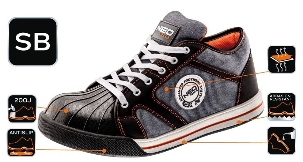 Categoria de incaltaminte SBRealizat din material respirabil.Talpa antialunecare din spuma EVAVarf din cauciuc pentru o rezistenta marita la deteriorarile mecanica.Varf de otel.In conformitate cu standardul EN ISO 20345.