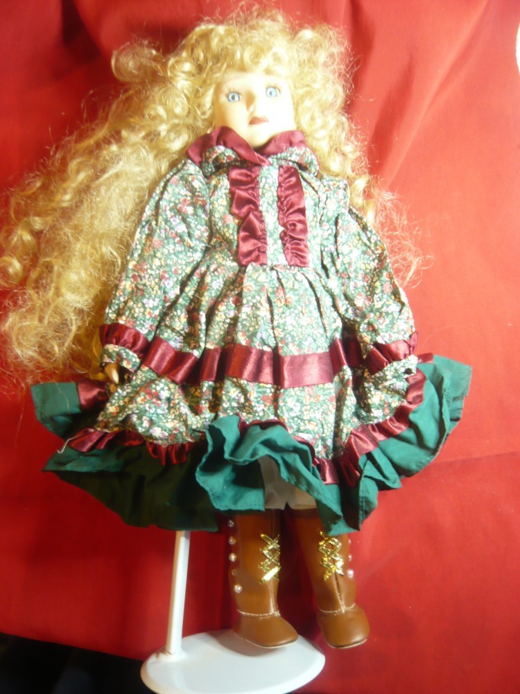 Papusa de colectie cu cap ,maini ,picioare portelan, cu suport metalic h=41cm