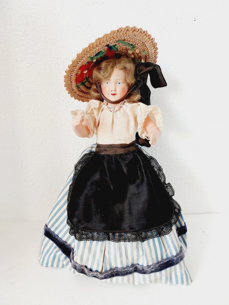Papusa vintage Franta costum port national popular etnic rustic 25cm inaltime