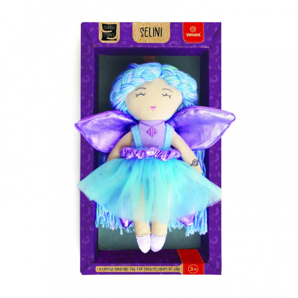 Papusa zana Selina Zburda si joaca-te alaturi de Selina, zana papusa de carpe cu un design unic! Confectionata din materiale sigure, ea poate oferi ore nesfarsite de distractie! Cu aripile magice convertibile, din tesatura irizata de culoare liliachie, puteti realiza multiple variante, de la aripi sau haine, la ornamente pentru par! Aripioarele pot fi purtate si pe mana sau pe parul micilor domnisoare, pe post de scrunchie (elastic de par)! Papusa zana are o lungime de 20 cm, trasaturi faciale brodate, par lung albastru, un body mov din satin si o rochie din tul albastru care poate fi indepartata si inlocuita. Varsta recomandata: + 3 ani. Conform standardelor EN71, ASTM, AVERTISMENT! Contraindicat copiilor sub 3 ani. A se folosi sub directa supraveghere a unei persoane adulte. Producator: Svoora, Grecia