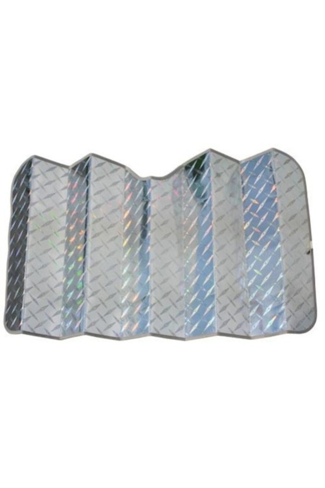 Parasolar pentru parbriz cu reflexie termică multistrat; O parte este acoperită cu poliester și carton holografic metalic; Prezintă izolație termică cu un strat intern de spumă de 3 mm; Interiorul are un strat subțire de poliester metalic.