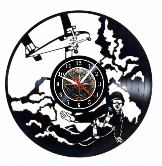 suprafața discului, silueta unui parașutist în cădere liberă pare