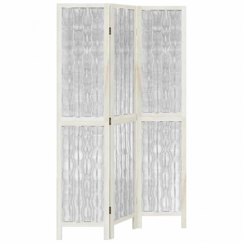 Paravan camera 3 panouri, alb, lemn masiv paulownia