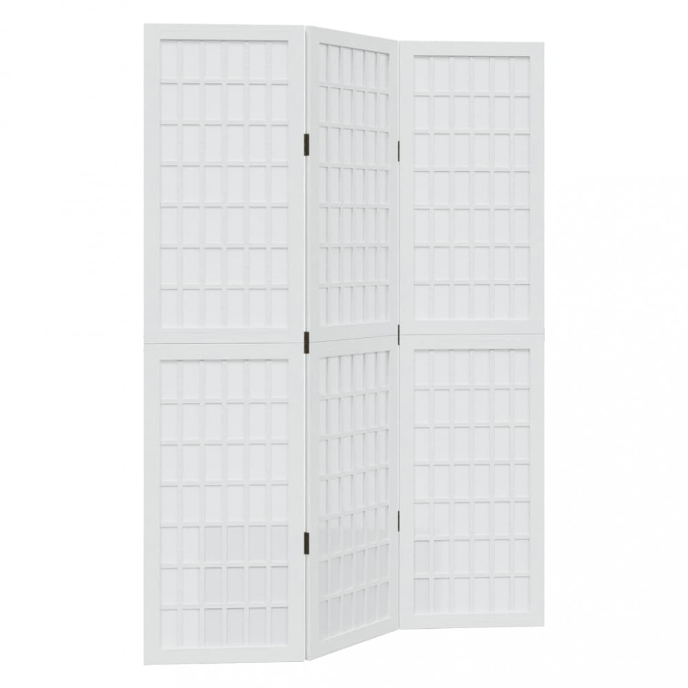 Paravan camera 3 panouri, alb, lemn masiv paulownia