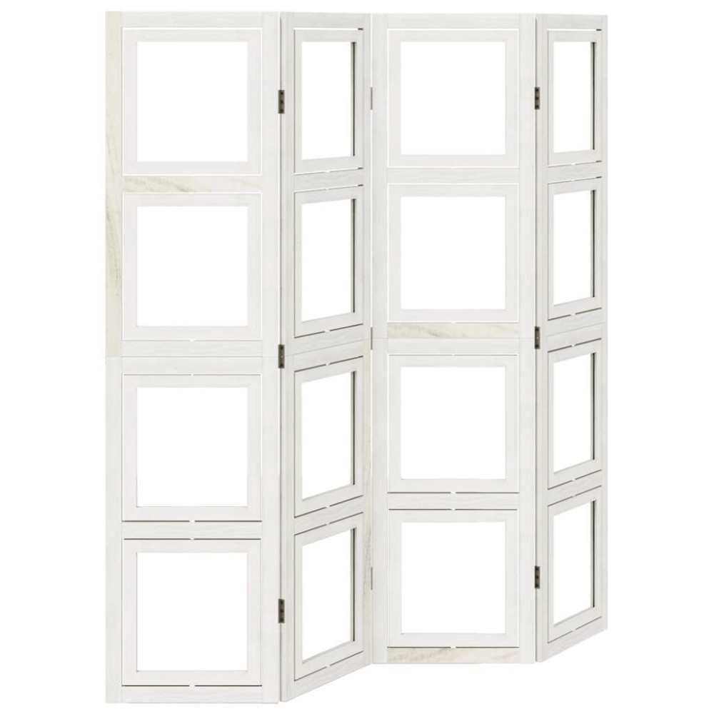 Paravan camera 4 panouri, alb, lemn masiv paulownia