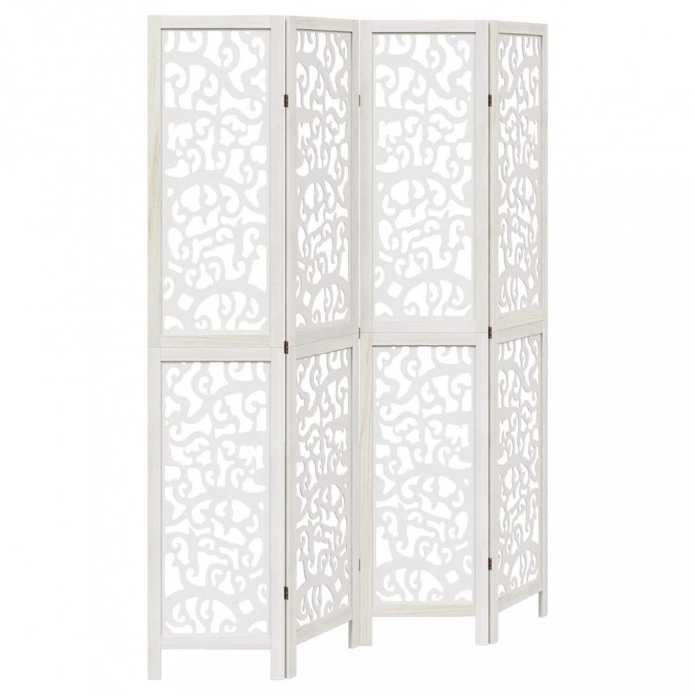 Paravan camera 4 panouri, alb, lemn masiv paulownia
