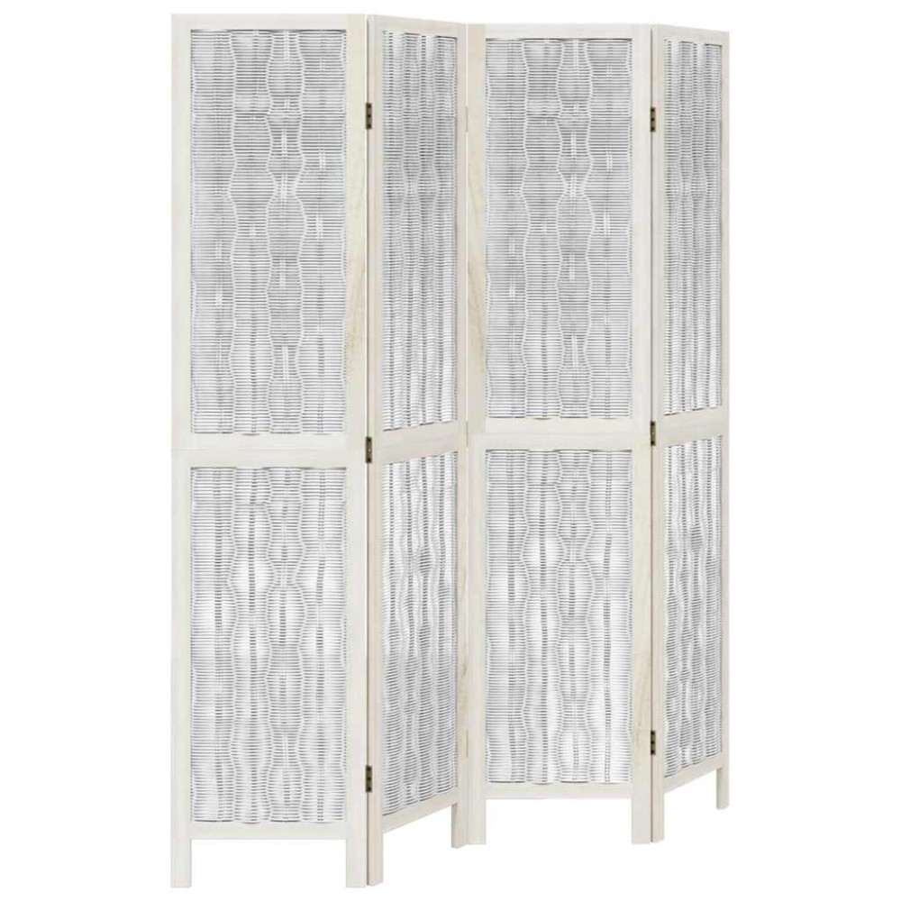 Paravan camera 4 panouri, alb, lemn masiv paulownia