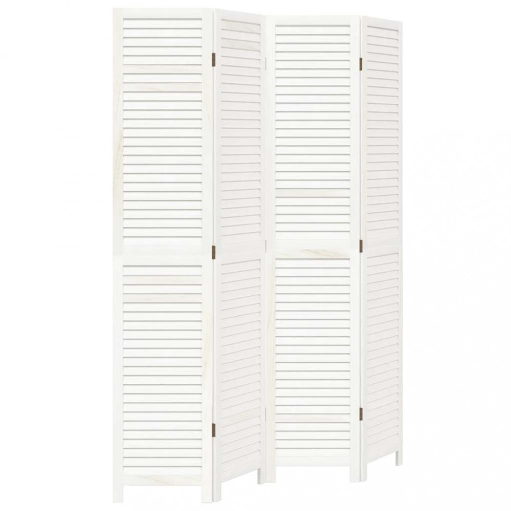 Paravan camera 4 panouri, alb, lemn masiv paulownia