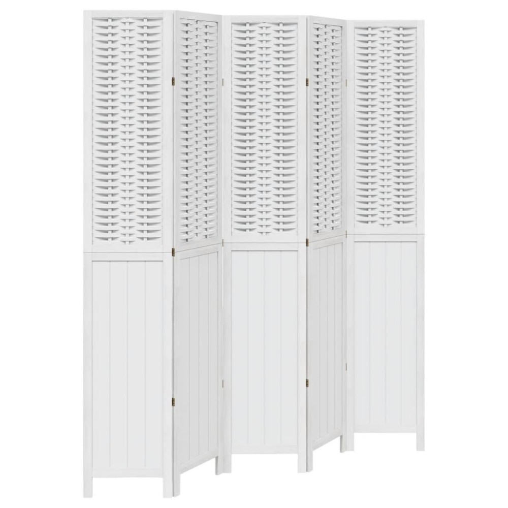 Paravan camera 5 panouri, alb, lemn masiv paulownia