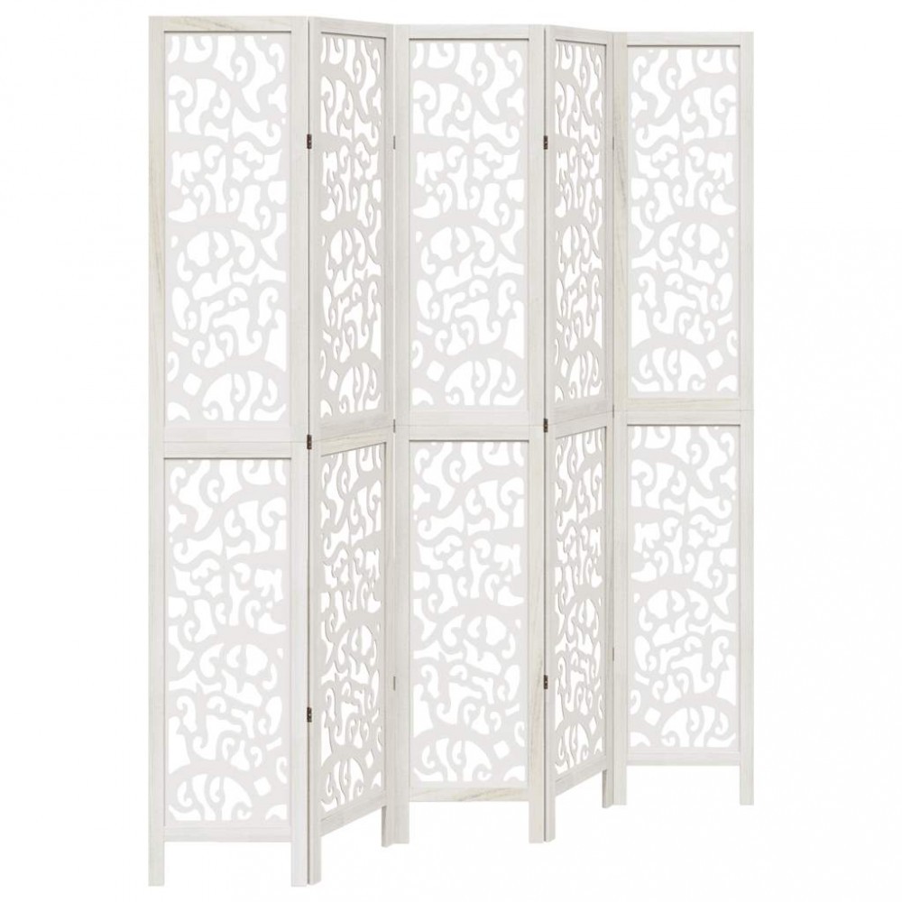 Paravan camera 5 panouri, alb, lemn masiv paulownia