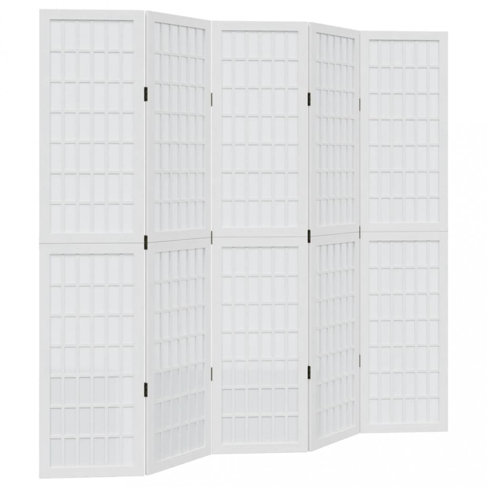 Paravan camera 5 panouri, alb, lemn masiv paulownia