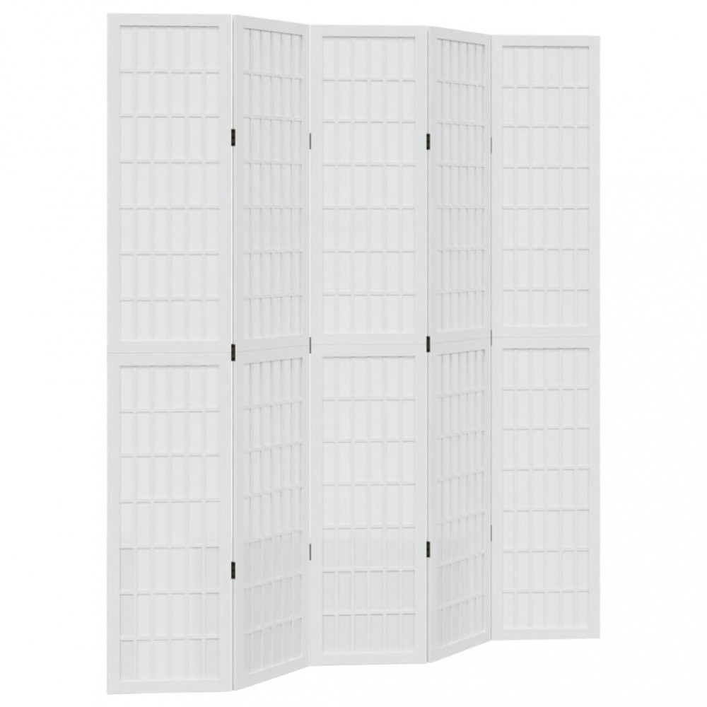 Paravan camera 5 panouri, alb, lemn masiv paulownia