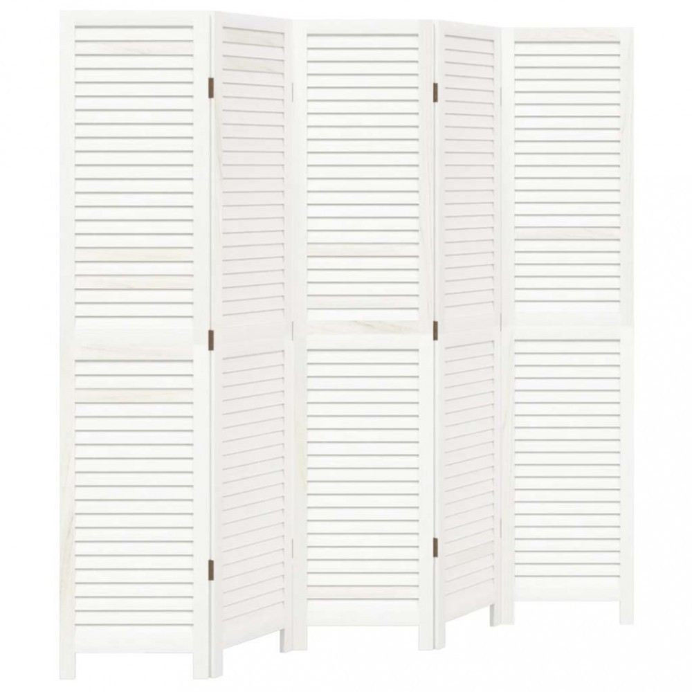 Paravan camera 5 panouri, alb, lemn masiv paulownia