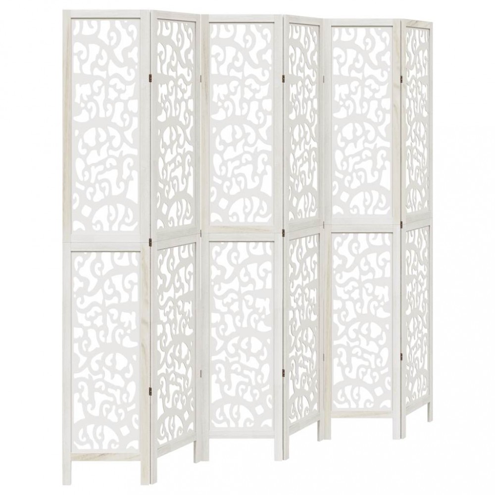 Paravan camera 6 panouri, alb, lemn masiv paulownia