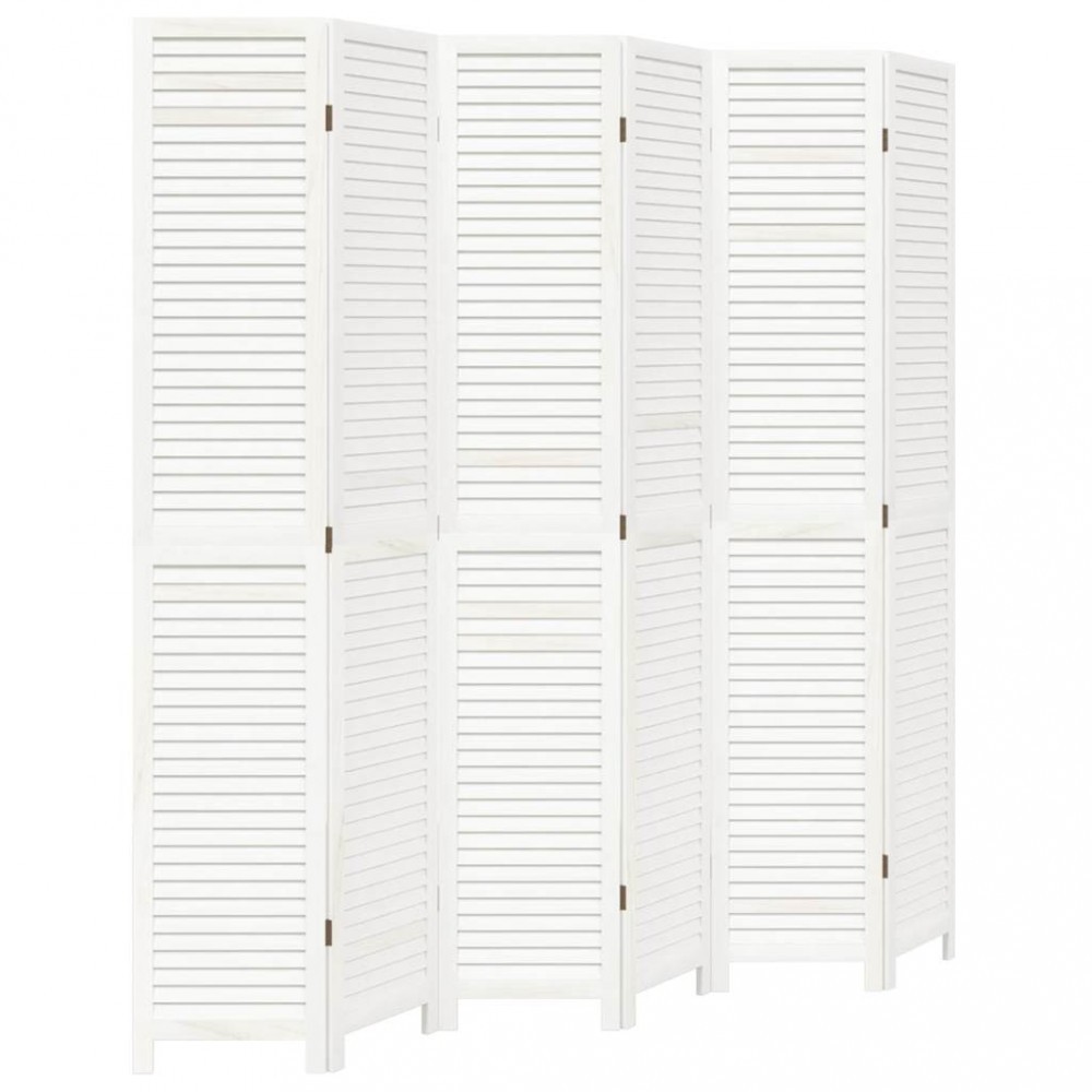Paravan camera 6 panouri, alb, lemn masiv paulownia