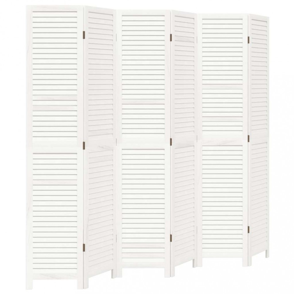 Paravan camera 6 panouri, alb, lemn masiv paulownia