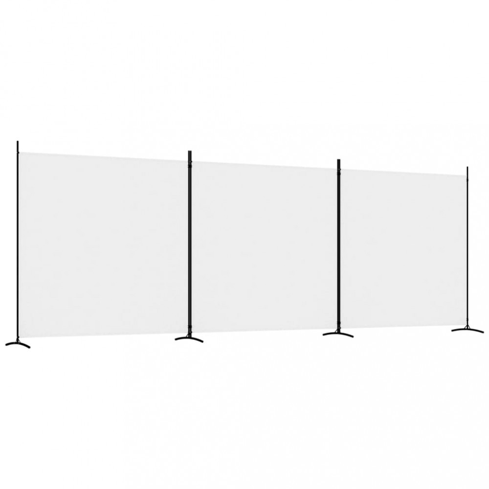 Paravan de camera cu 3 panouri, alb, 525x180 cm, textil