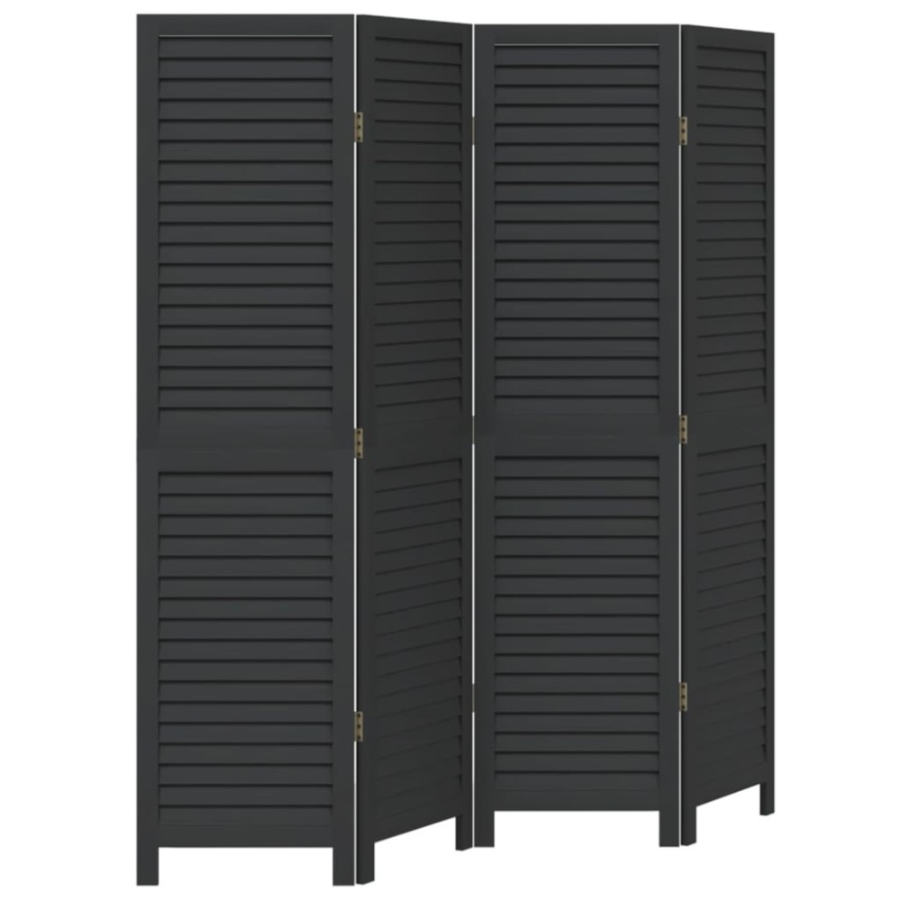 Paravan de camera cu 4 panouri, negru, lemn masiv paulownia