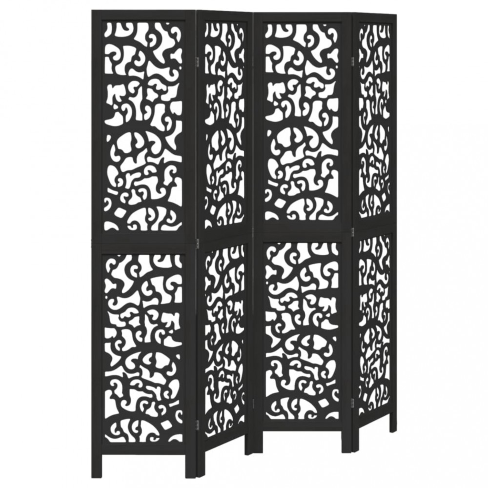 Paravan de camera cu 4 panouri, negru, lemn masiv paulownia