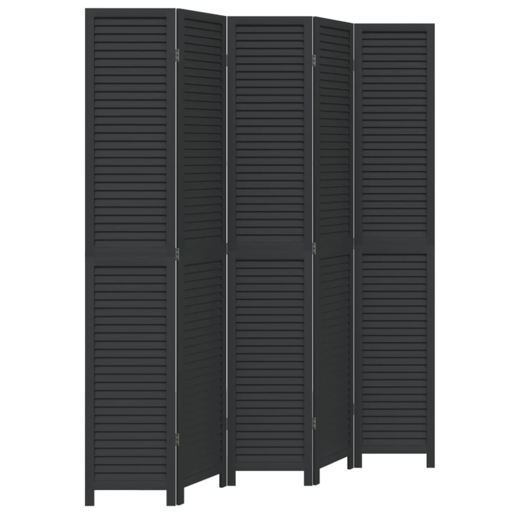 Paravan de camera cu 5 panouri, negru, lemn masiv paulownia