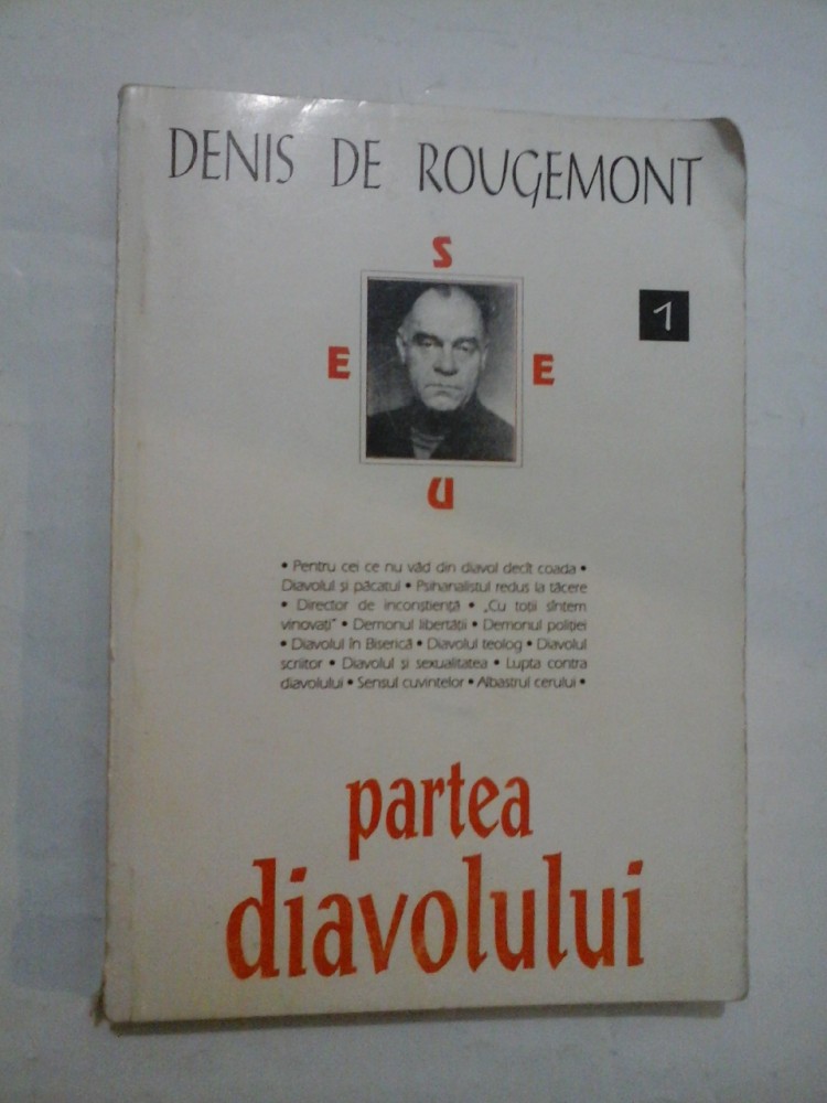 PARTEA DIAVOLULUI - autor DENIS DE ROUGEMONT - Editura Anastasia 1994 - 213 pagini - cateva pagini usor subliniate cu creionul