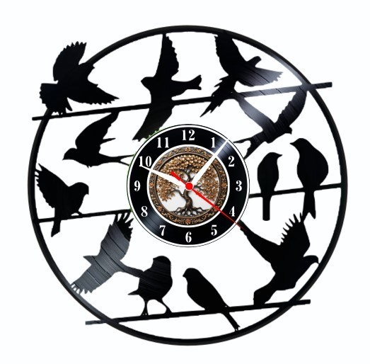 ### Ceas de Perete „Păsări pe Sârmă” din Disc de Vinil