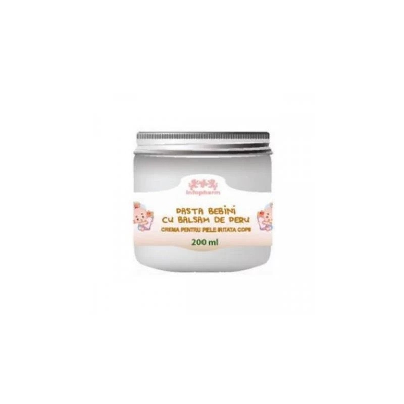 Pasta Bebini cu Balsam de Peru Infopharm: este o crema ce asigura protectia zilnica a pielii bebelusilor. Lupta impotriva iritatiilor piele, avand rol calmant. De asemenea, acest produs ajuta la cicatrizarea ranilor, iritatiilor de scutec si escarelor.