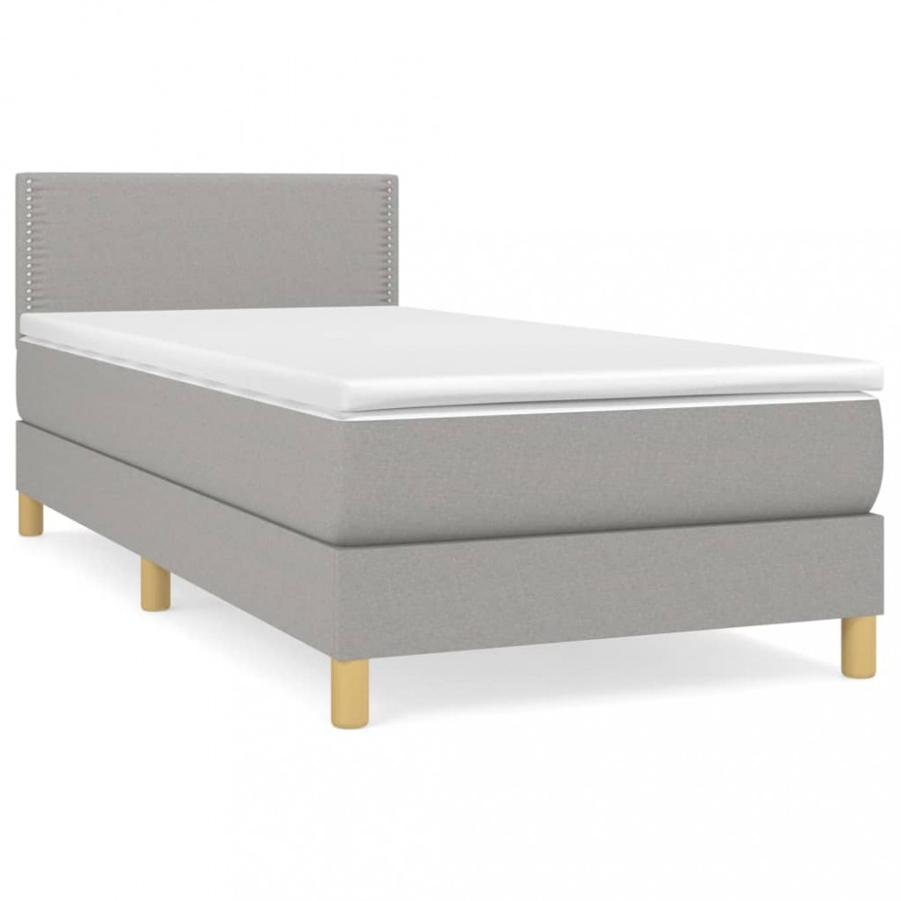 Pat box spring cu saltea, gri deschis, 90x190 cm, textil