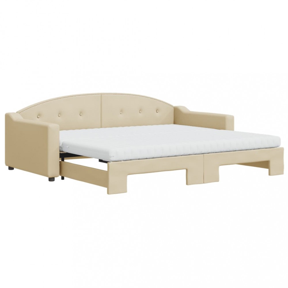 Pat de zi cu extensie si saltele, crem, 90x200 cm, textil