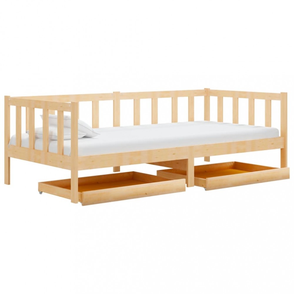 Pat de zi cu sertare, 90x200 cm, lemn masiv de pin