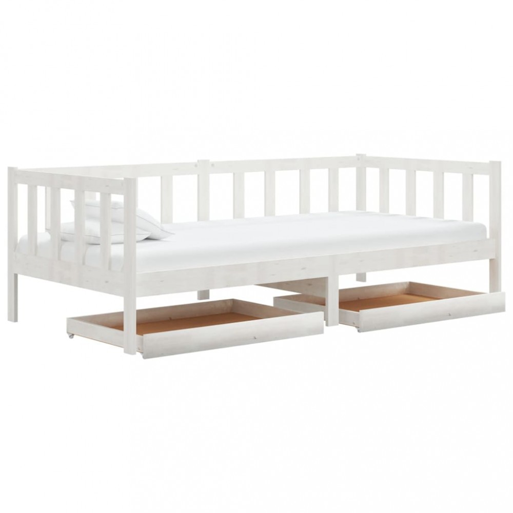 Pat de zi cu sertare, alb, 90x200 cm, lemn masiv de pin