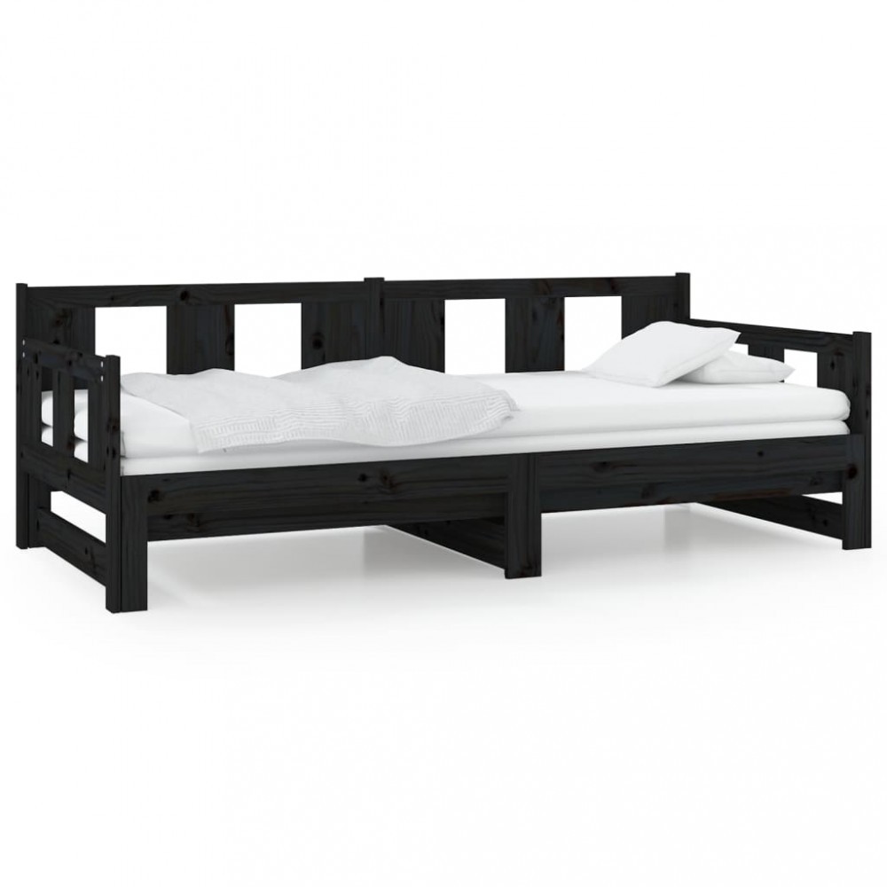 Pat extensibil de zi, negru, 2x(90x190) cm, lemn masiv pin